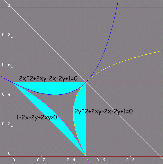紅色斜線為可形成銳角三角形的區域